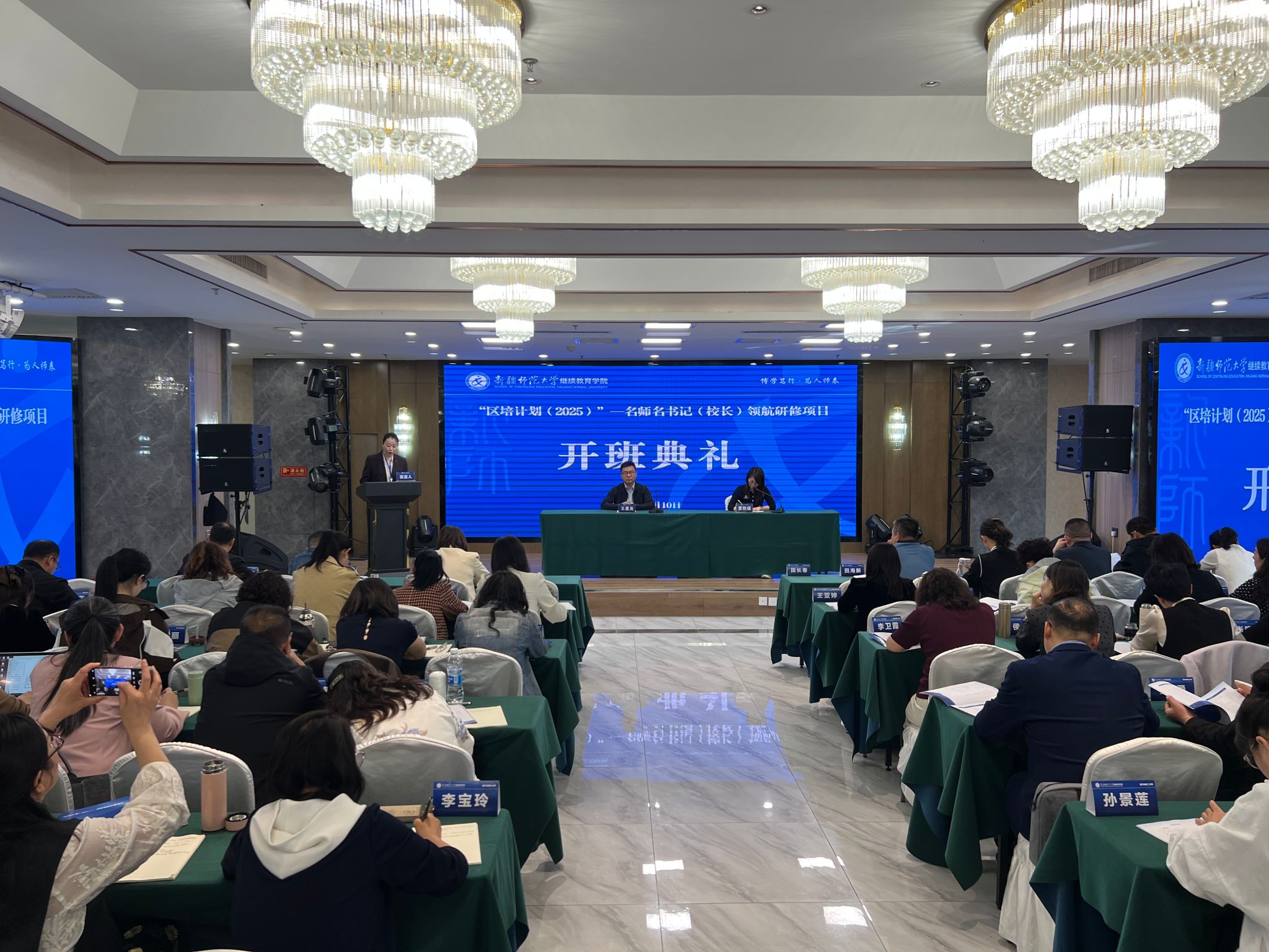 4月10日上午,我校承办的“区培计划(2025)”——名师名书记(校长)领航研修项目开班典礼在哈密大厦东天山宴会厅举行。新疆师范大学继续教育学院副院长王星炎,以及110名参训学员参加了开班典礼。开班典礼由新疆师范大学继续教育学院国培计划项目办公室主任董秋瑾主持。
