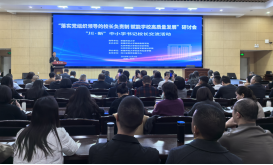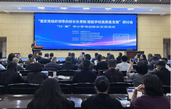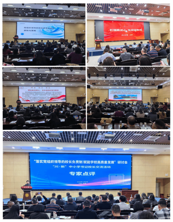 主旨报告结束后,来自四川省的两位书记校长和新疆的两位中小学书记结合研讨会主题分享了各自学校在党建引领教学、班子协同管理、特色品牌打造等方面的实践经验与探索思考。